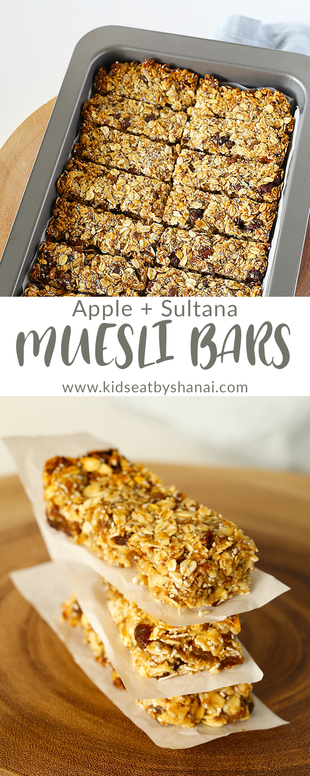 Home made apple sultana muesli bars made with oats, chia seeds and honey…… perfect for school lunch boxes!