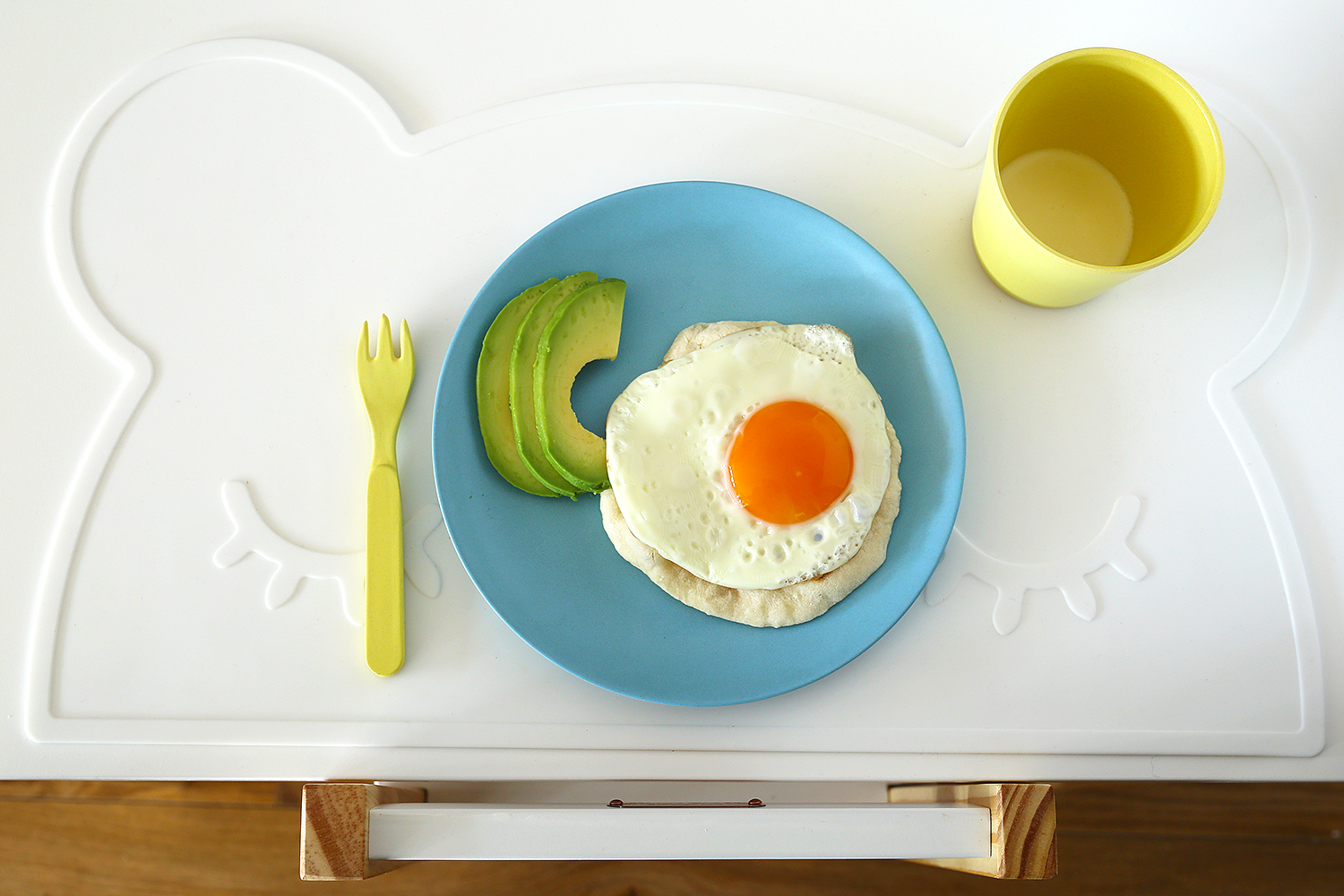 A delicious kid’s breakfast of easy yoghurt flatbread with egg and avocado.
