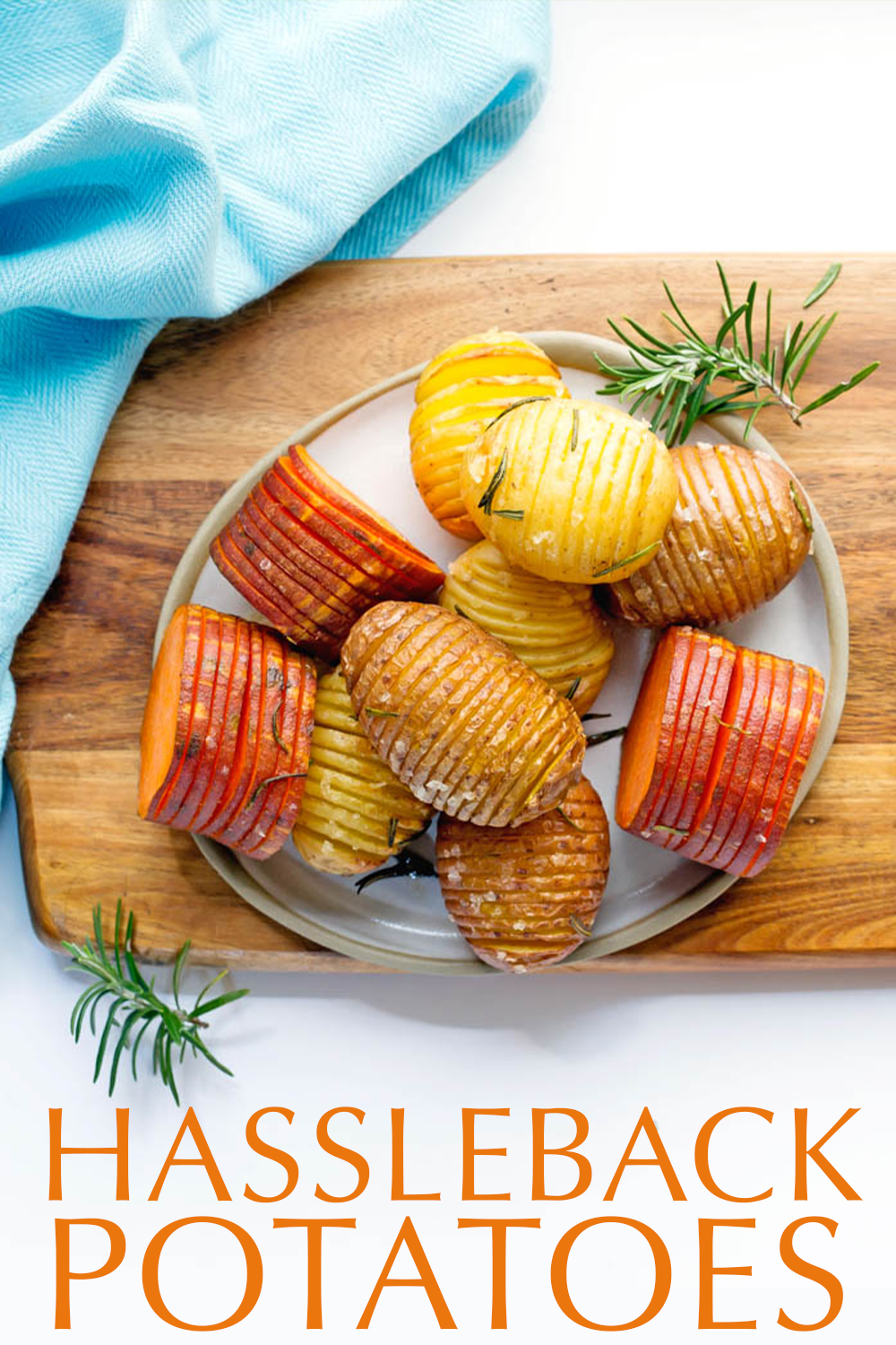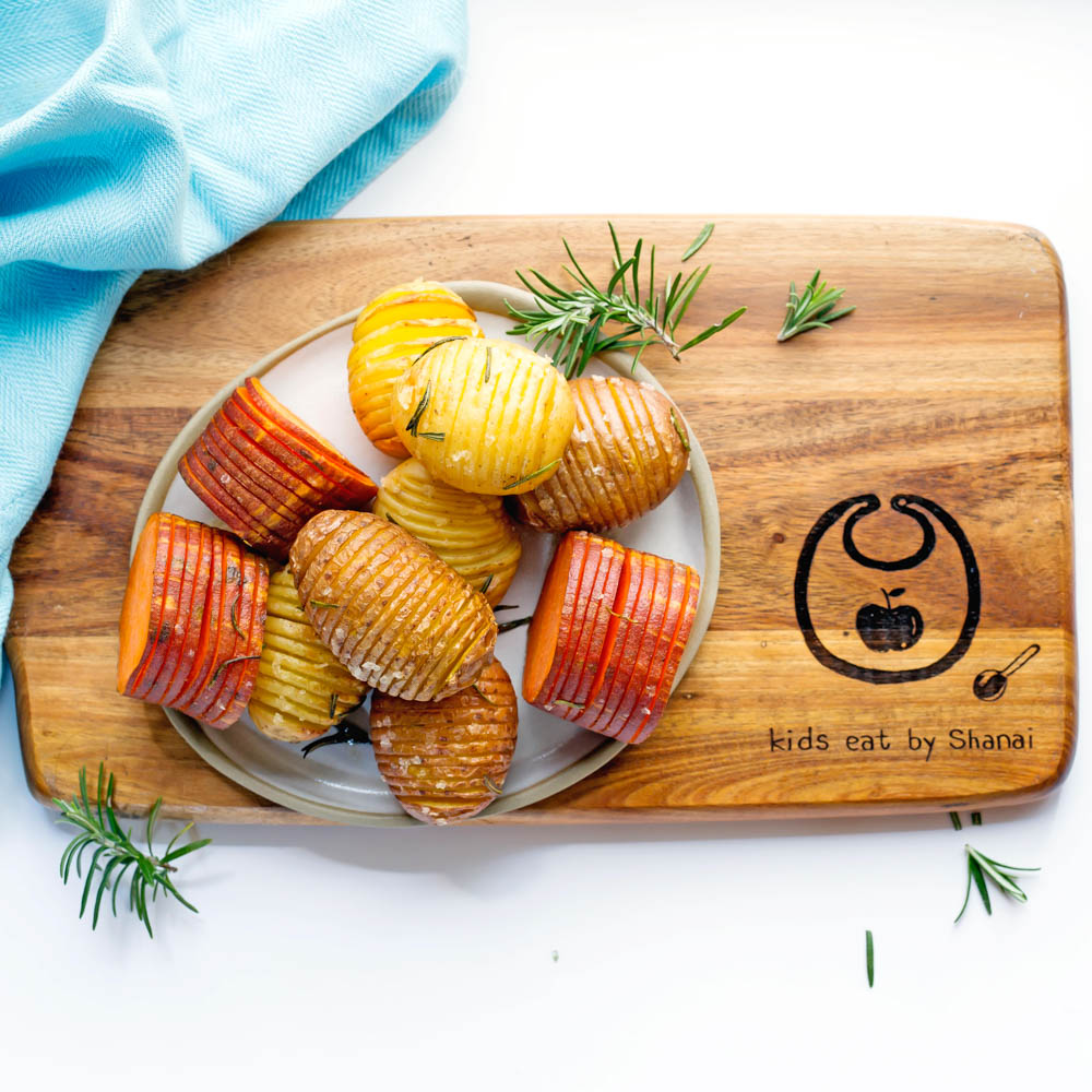 These cute little hasslebacks are a great way to make the mere spud a little more interesting and can be done with most types of potatoes, even sweet potato.