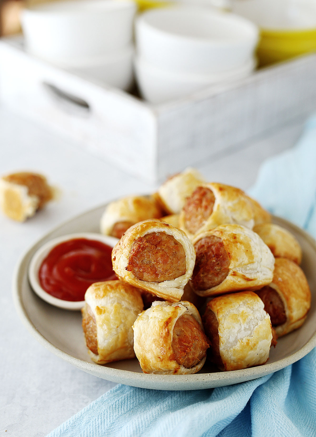 These are a really easy way to make your own sausage rolls and taste way better than the packets of little party sized ones. Get hold of some really good quality sausages from your butcher and they will taste amazing. Perfect for kid’s birthday parties, watching the footy or even something different in their lunchbox.
