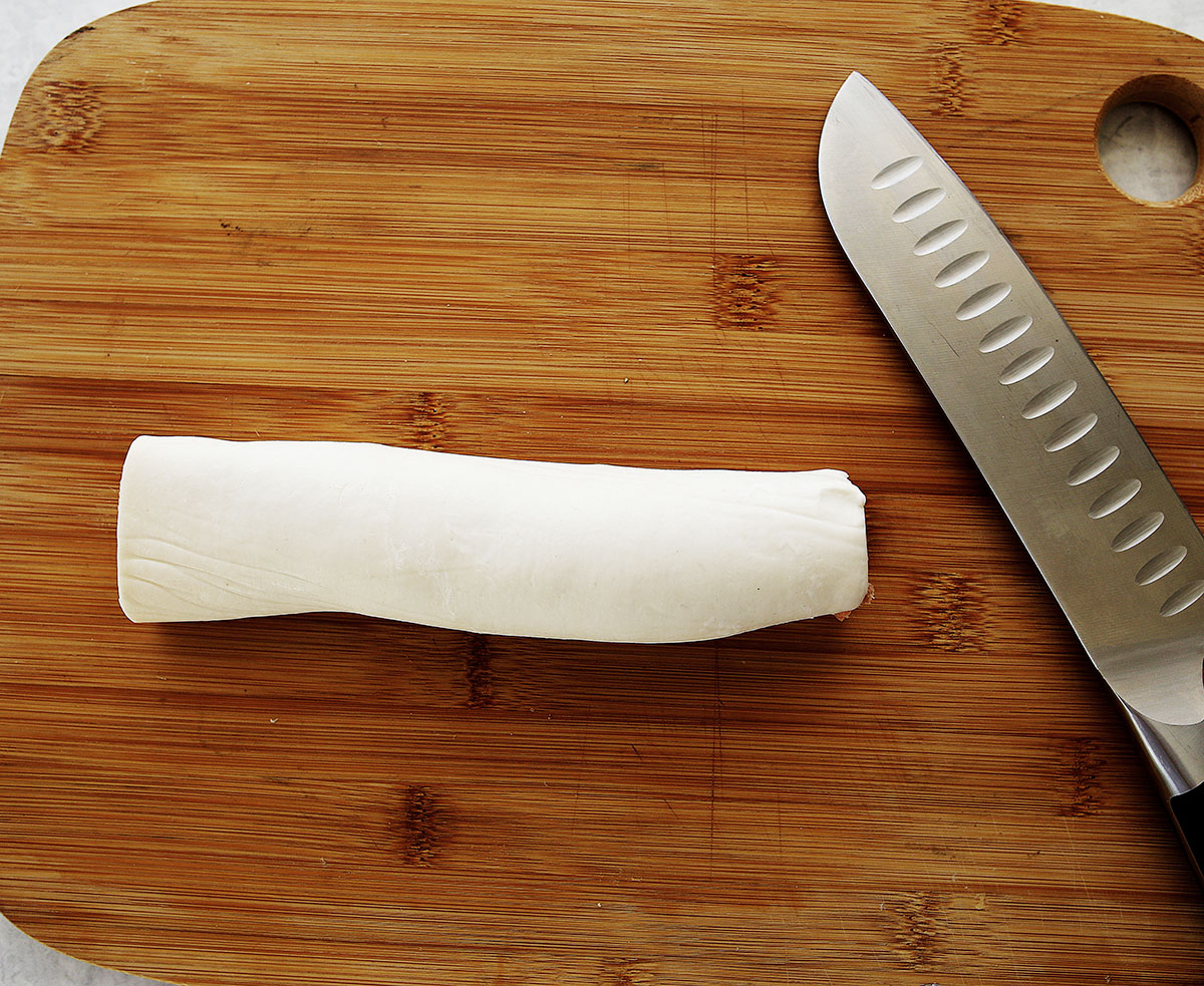 If your sausages are quite short, you could cut one in half and line up one and a half sausages across your pastry and then roll. You would then need 6 sausages instead of 4.