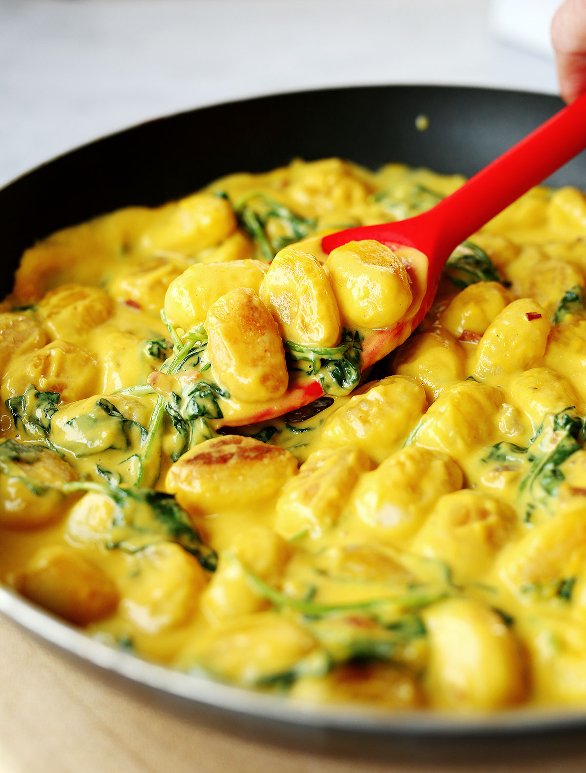 You don’t want to overcook the gnocchi so get your sauce warm first so you can remove from heat quickly.