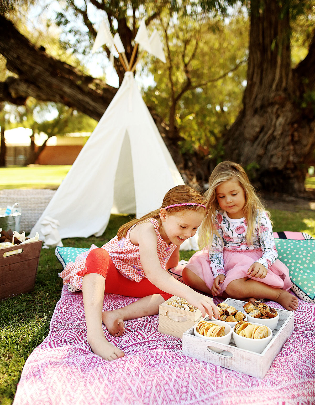 I ducked into a Kmart to just grab a couple of wooden boxes to put the popcorn in and as we have all experienced, came out with an overflowing trolley. I can say though, it all came to less than $100 and Georgia’s little woodland picnic looked amazing! Here is a list of the both the decorations I got from Kmart and another option for the items I already had at home. So essentially you could replicate this cute little party entirely from Kmart. None of these are affiliate posts, I don’t get any commissions I just wanted to share how easy it is to create a little themed children’s party.