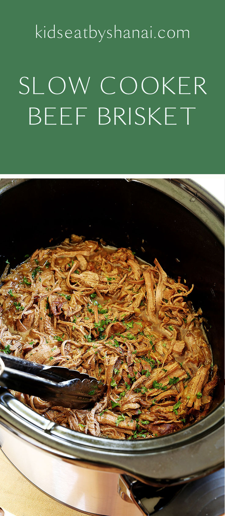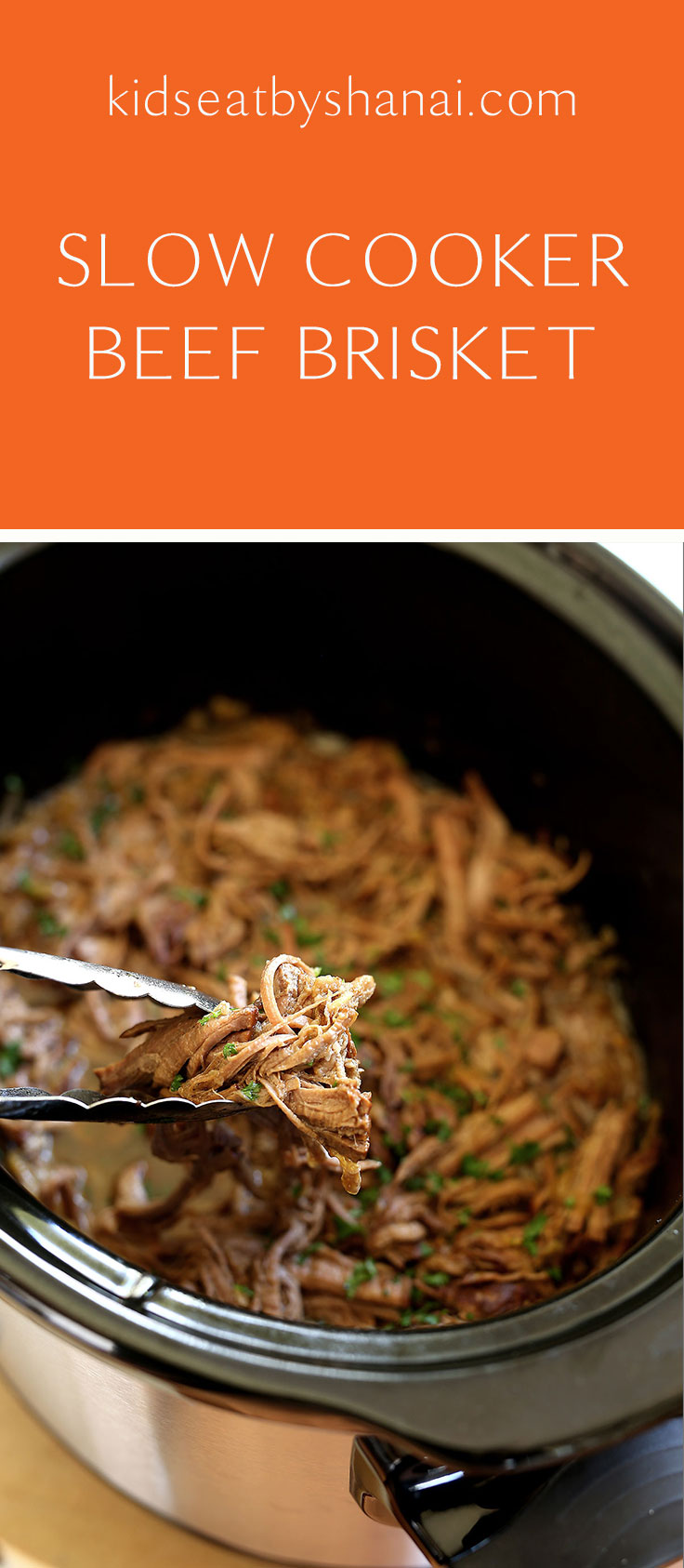 Slow Cooker Beef Brisket that is fall-apart tender, full of flavour and made with just a handful of ingredients!
