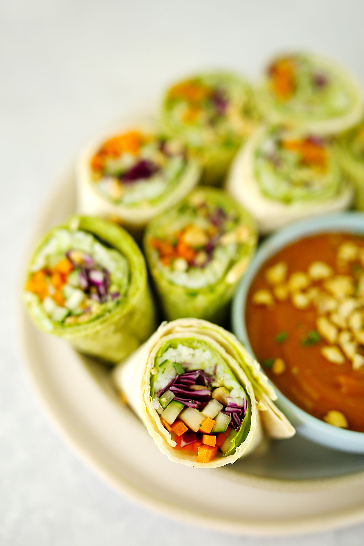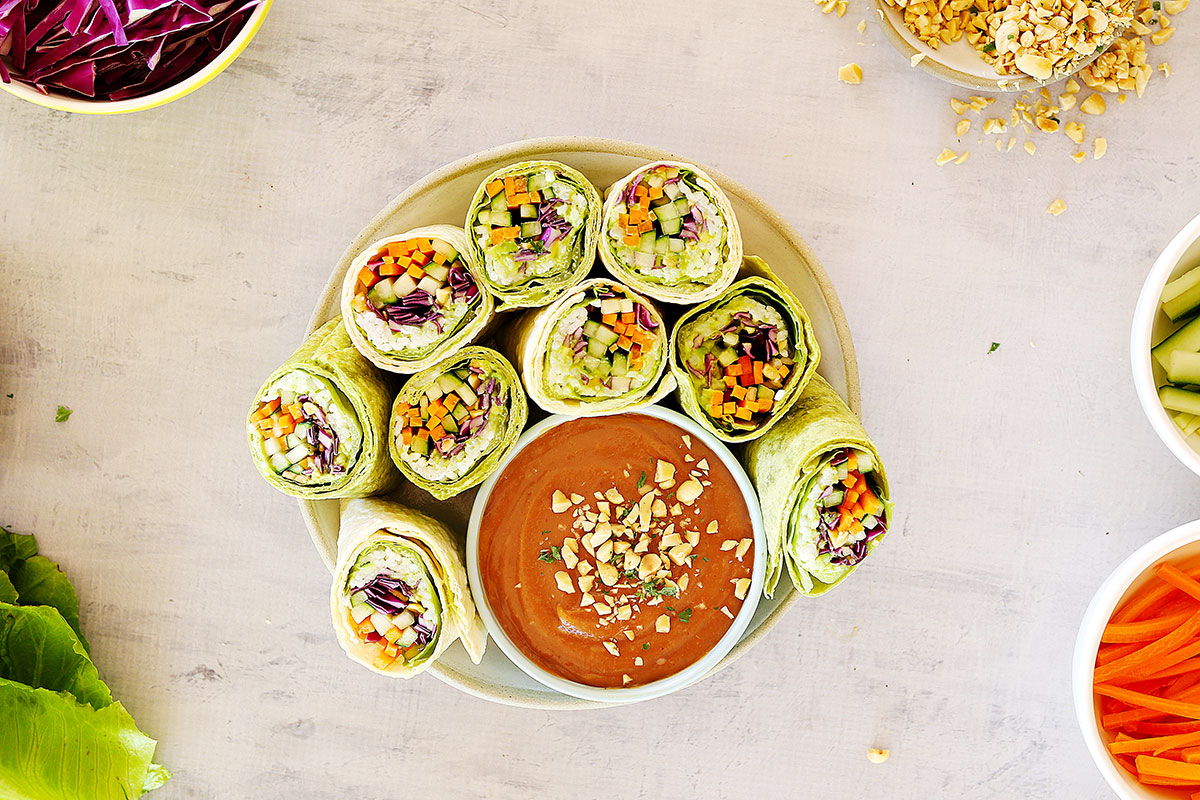 Vegetarian Wraps perfect for school lunchboxes. As they are dairy free and meatless, you don’t need to worry about trying to keep them cool in your kid’s lunchboxes.